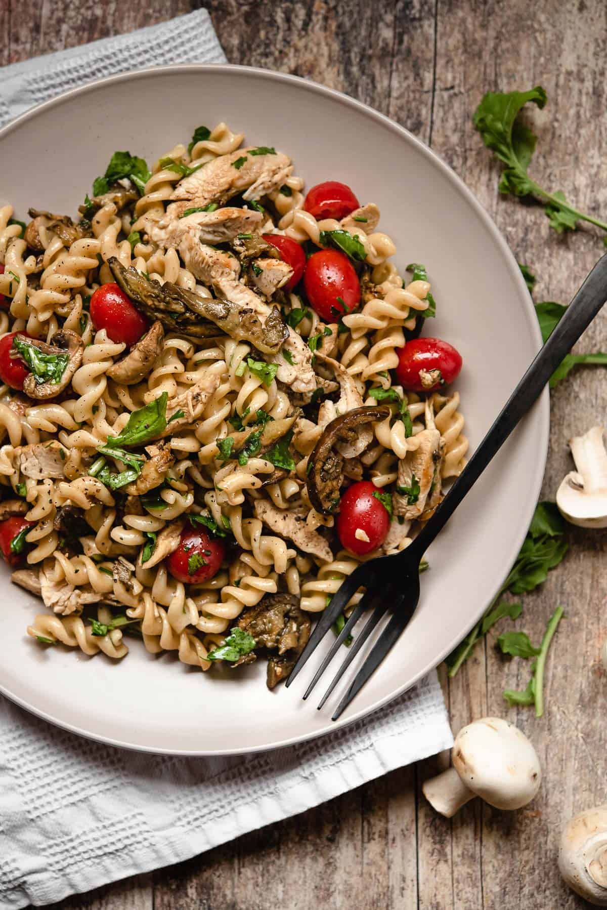 200 grams / 7 oz uncooked whole wheat fusilli pasta (or bow tie pasta or mini penne)